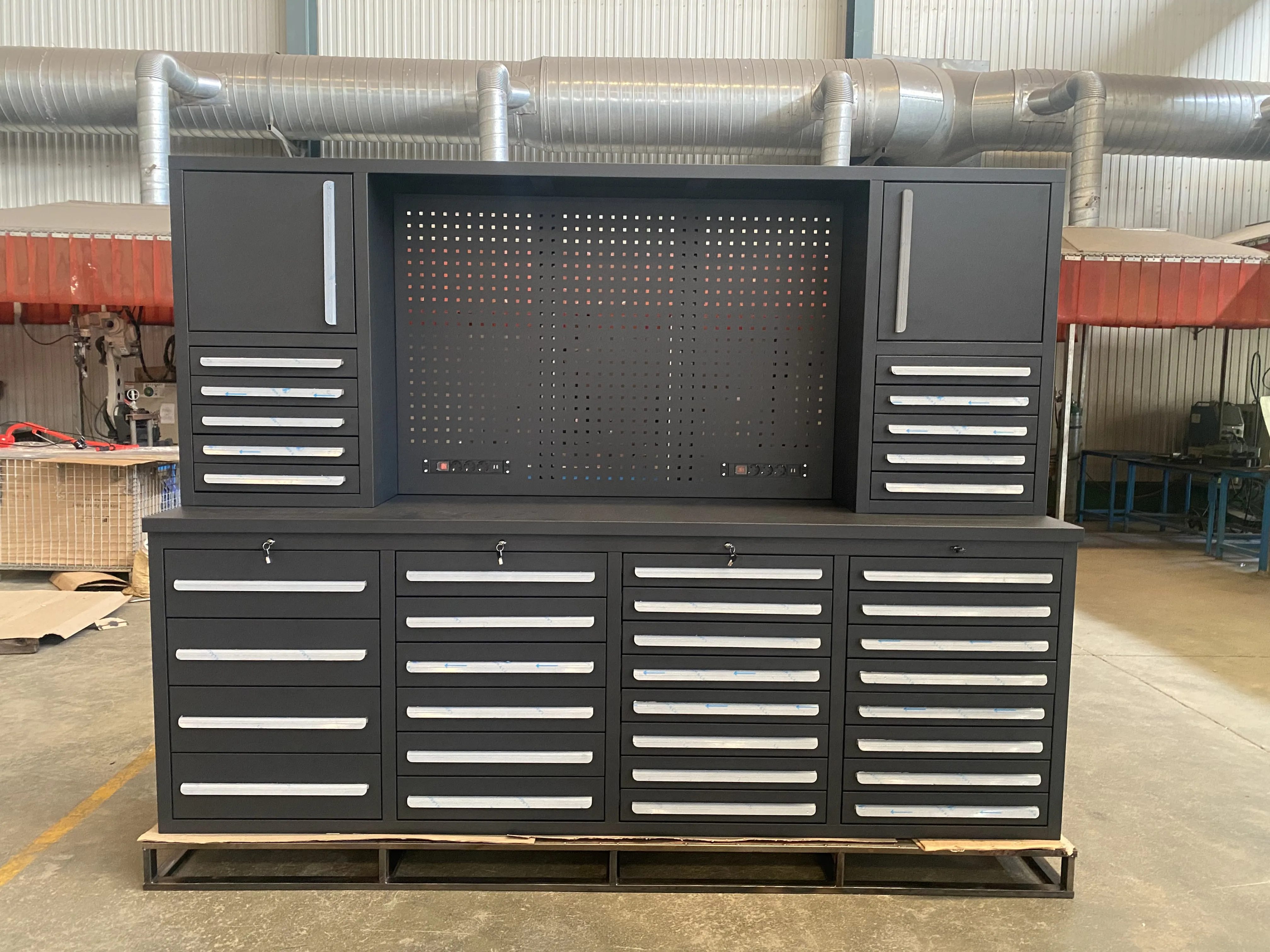 Skříň nástroje má délku 2550 milimetrů. Tloušťka, barva, velikost a zásuvky lze přizpůsobit podle požadavků zákazníků. Jak Wrokbench, tak zásuvky jsou vyrobeny z oceli válcované na studené. Jsou zde dva energetické pásy. Zásuvky jsou vybaveny LED světly, LED světla mohou být zavěšena na panelu sítě, které usnadňují osvětlení při práci na pracovním stole. V zásuvkách jsou polštáře, které mohou účinně snižovat škrábance.