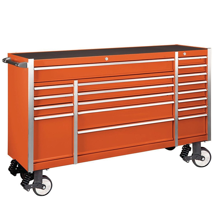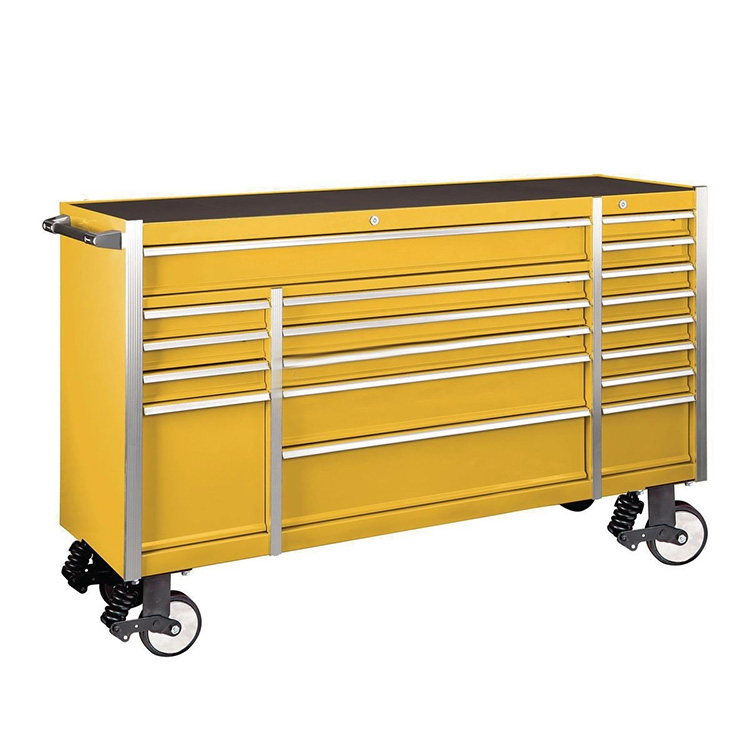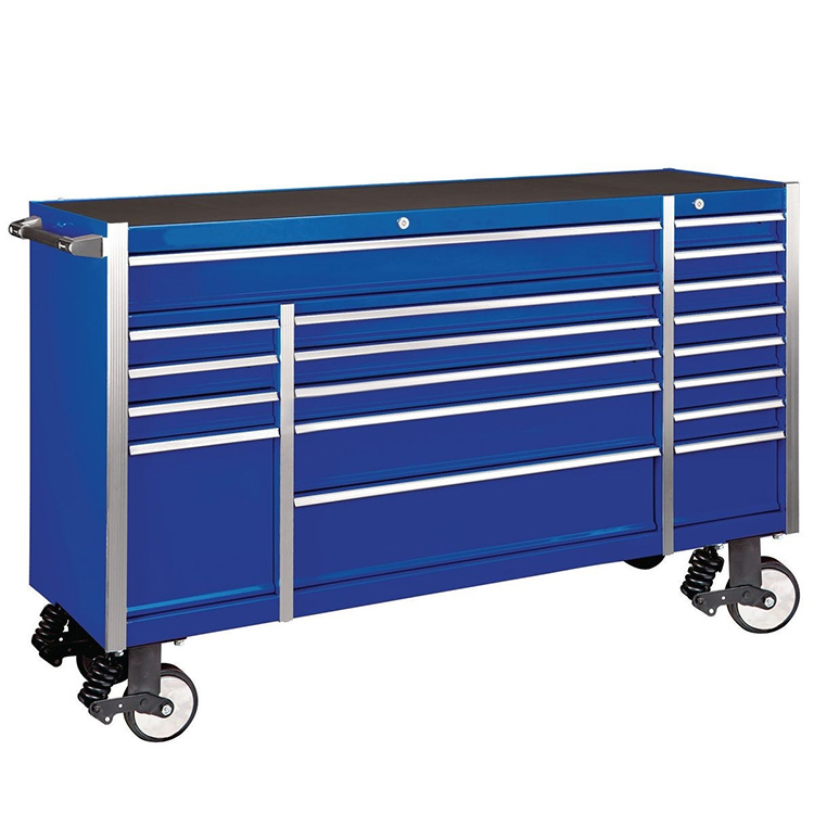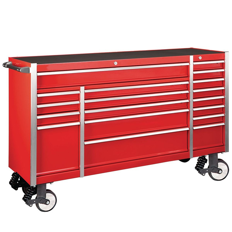 Rolicí nástrojová skříňka zahrnují četné zásuvky různých hloubek, aby se přizpůsobily různým velikostem nástrojů, a uvnitř, které chrání nástroje a zabraňují klouzání.